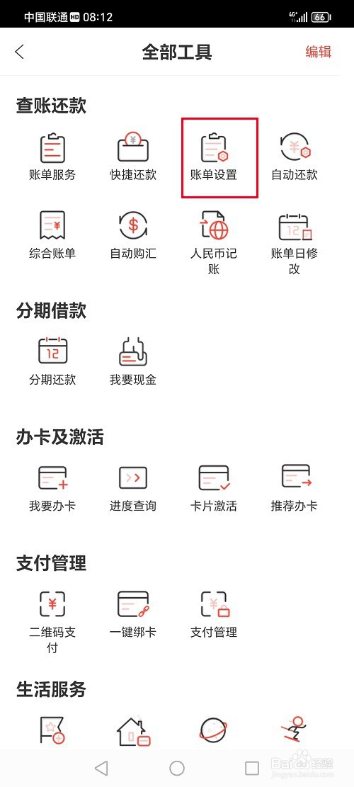 第三步进去全部工具界面之后,点击查账还款的账单设置