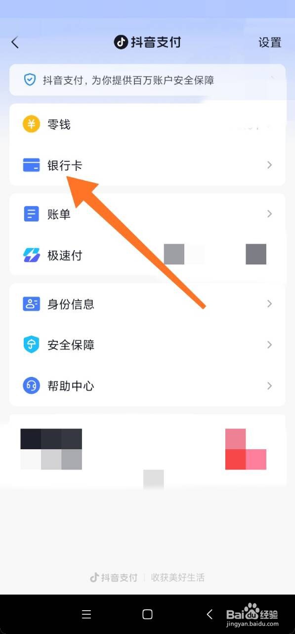 在抖音支付界面,点击银行卡。