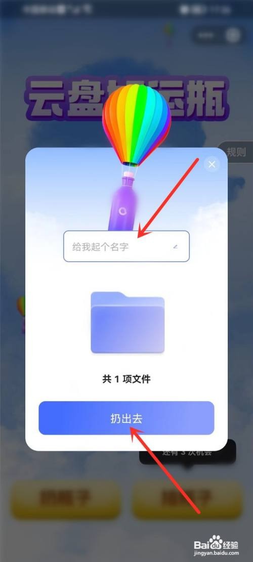 输入好运瓶名字,点击“扔出去”按钮,即可扔好运瓶。