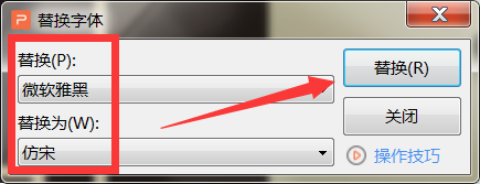 弹出替换面板——选择步骤1中的字体替换成你需要的字体——替换