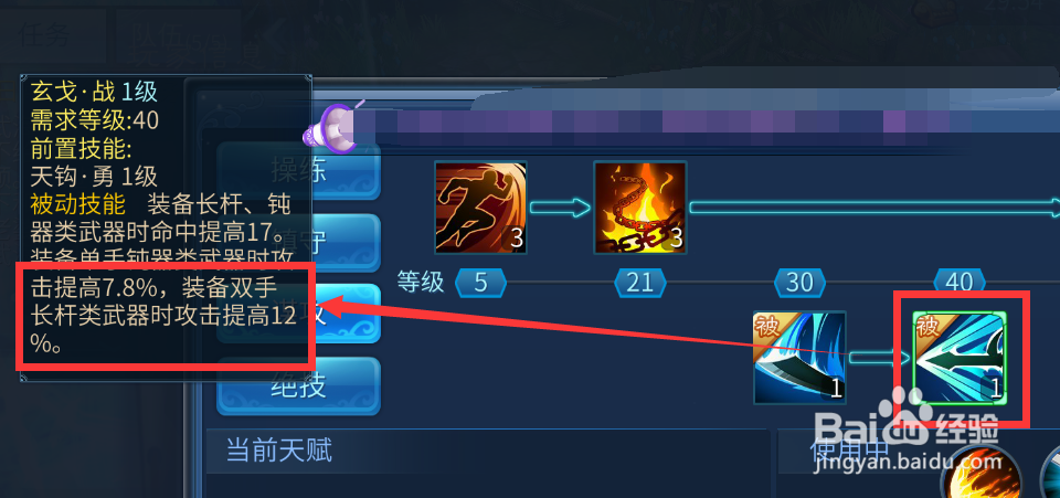 根据步骤2的技能详解,可以知道在角色等级低时使用斧类武器,技能加成高,到角色等级高时(109级以上)则使用钝器武器加成比较高
