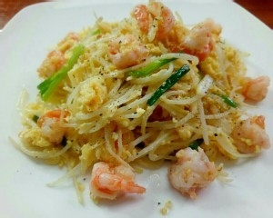 起锅装盘后,稍微整理一下虾仁,趁热的时候用打磨瓶打磨上少许黑胡椒。这道精美的小炒就做好了。