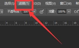 首先我们打开电脑上的PS,点击顶部的【滤镜】菜单。