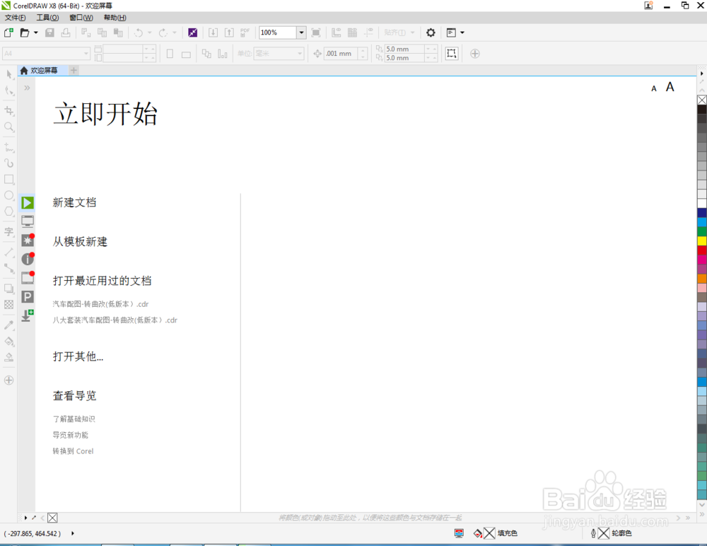 打开CorelDRAW X8软件,点击【新建文档】,按图示参数新建一个cdr文档(如图所示);