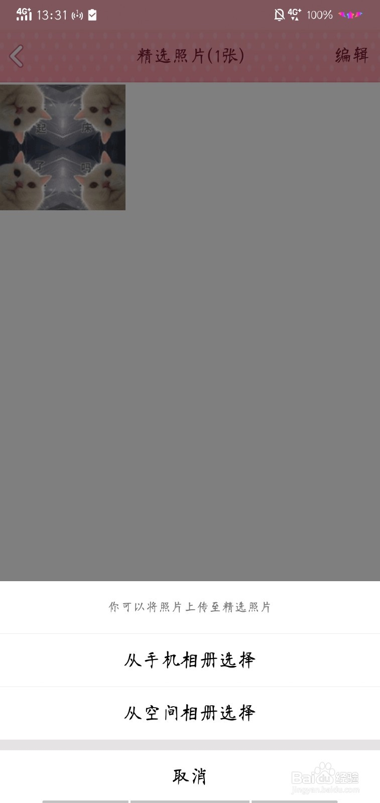 在这里选择从手机相册或者空间相册上传,选择好照片后,点击上传就可以了。