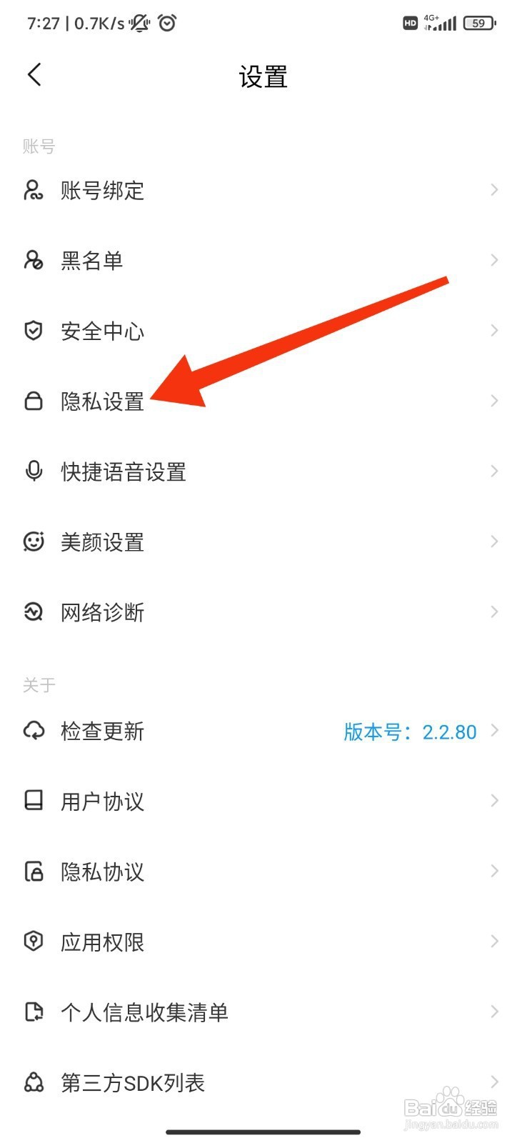 设置列表选择【隐私设置】;