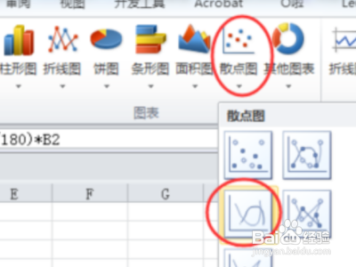 下面我们就得选择X和Y的两个坐标的全部数据了,先点击一下插入,找到选项卡,接着找到三点图,如图下: