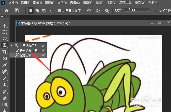 首先,我们在PS中打开如图所示的图片,选择工具箱中的魔术棒工具。