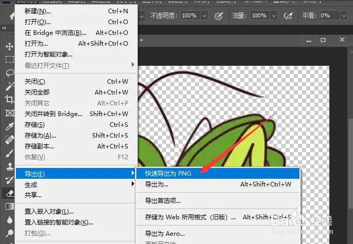 最后,点击文件菜单中的导出选项,将图片以png格式导出保存。最后就可以将对应的图片放置到其他文档中,并设置透明背景。
