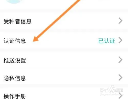 第二步,进入我的界面后,点击上面的认证信息选项。