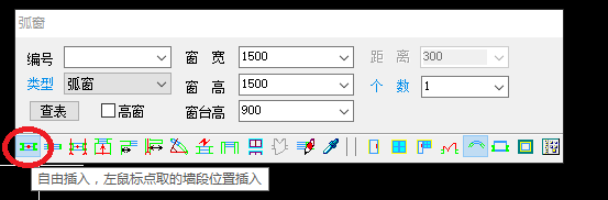 打开“门”编辑页面,点击“插弧窗”,如下图所示