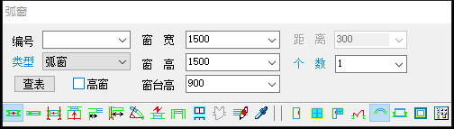 打开“弧窗”编辑页面,依次选择自己需要的“编号”、“类型”、“窗宽”、“窗高”、“窗台高”,如下图所示