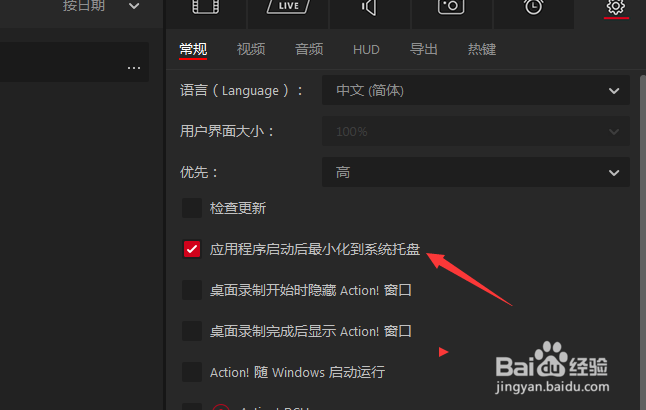 勾选上应用程序启动后最小化到系统托盘选项