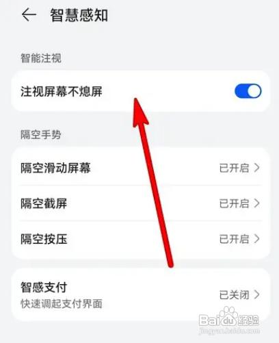 第三步:开启“注视屏幕不熄屏”选项即可完成,如图所示。