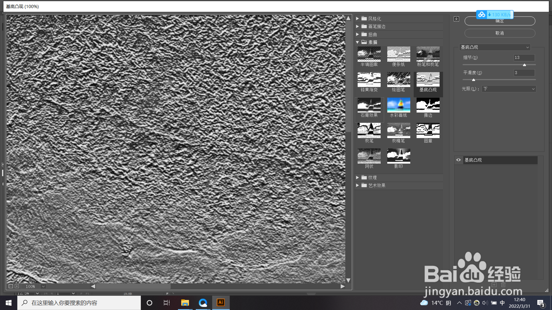 如下图所示,点击弹出“基底凸现”的设置框,可以预览效果。