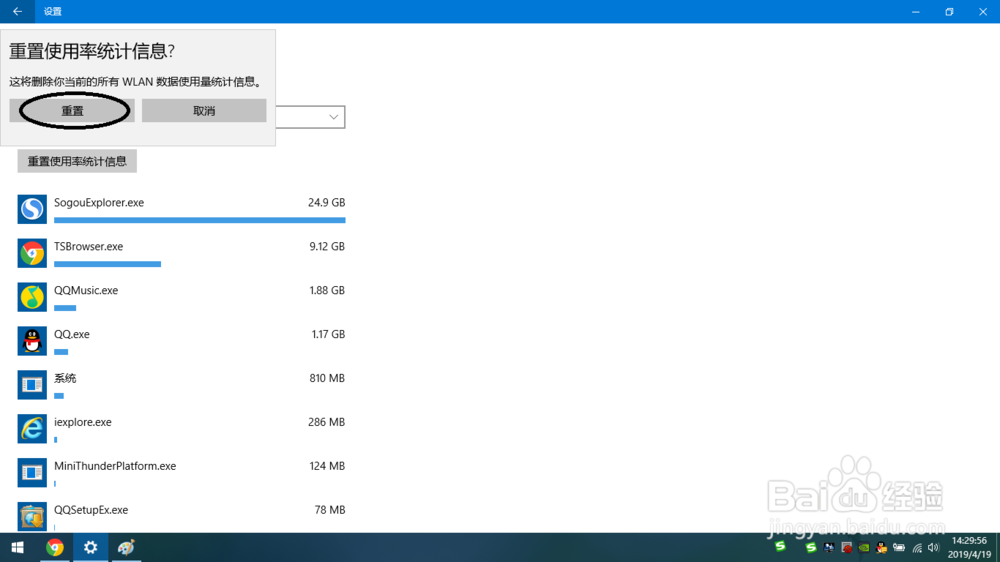 随后再弹出重置使用率统计信息提示中选择【重置】选项。