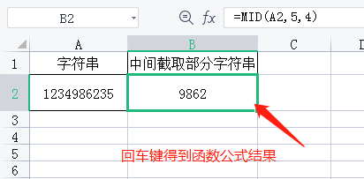 在B2单元格输入函数公式“=MID(A2,5,4)”。