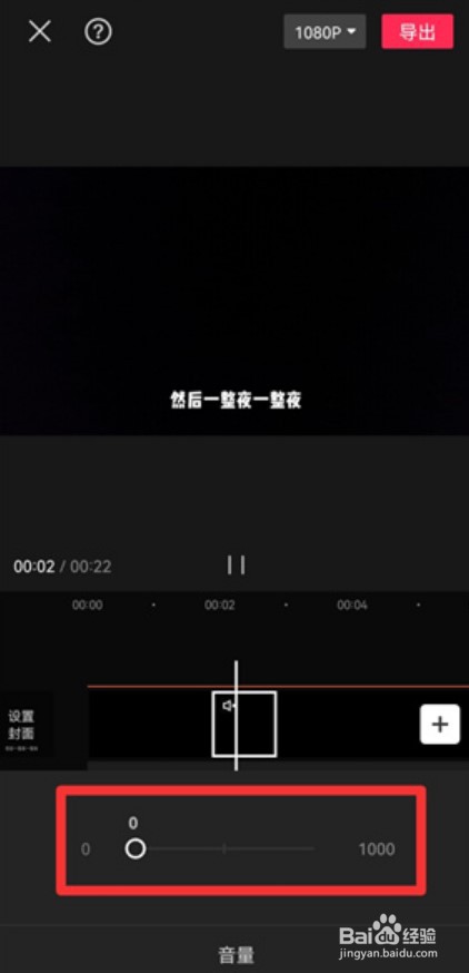 最后将音量拉到0。这样我们就完成了视频局部静音设置。