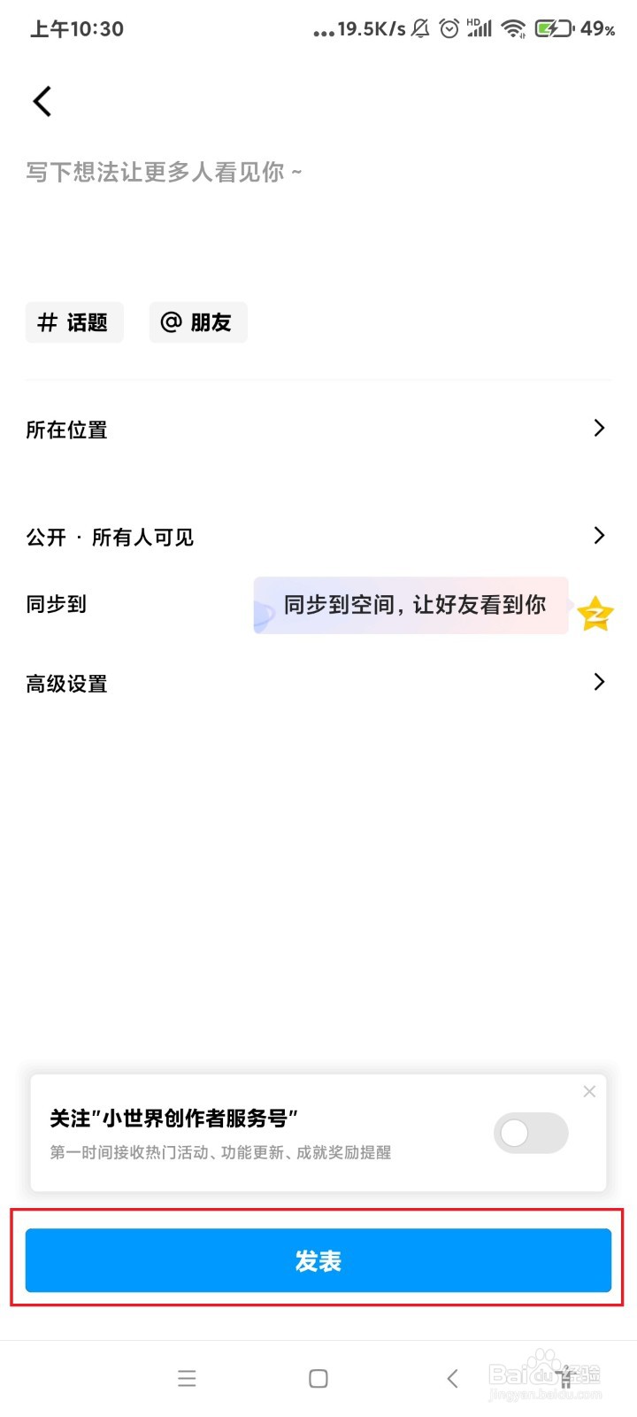 在QQ小世界发布内容的方法很简单。只需要简单的3个步骤就能完成, 以下为详细步骤说明: