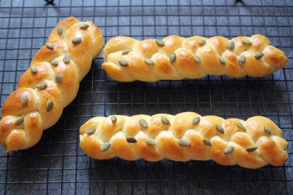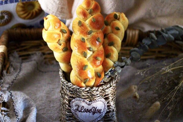 我家宝贝最近喜欢上吃面包了,今天刚好有时间就给我家宝贝撸了一炉辫子面包,三股辫子面包,漂亮又萌的造型,金黄的色泽,细腻柔软的口感,烤好后、宝贝吃了整整一条呀……该文章来自豆果美食达人作者踏月色而来7737