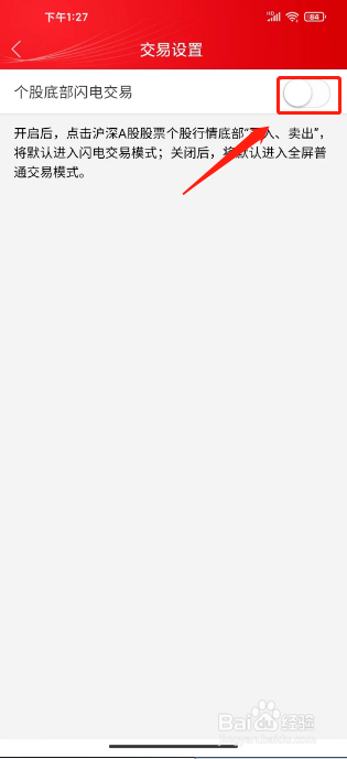 进入交易设置,点击【个股底部闪电交易】右侧按钮关闭。