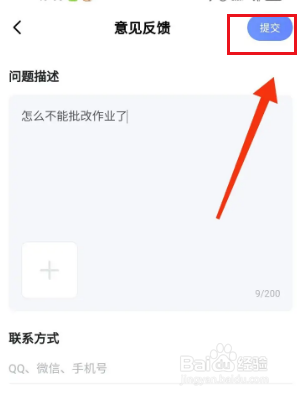 最后,点击帮助与反馈,如下图,输入怎么不能批改作业了,点击意见反馈,这样提交就可以了。