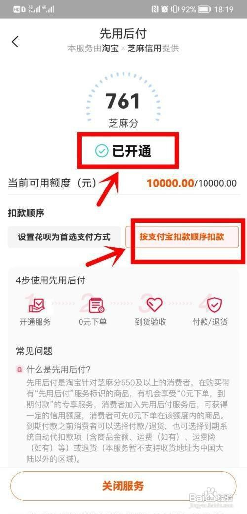 进入页面后,选择扣款顺序,点击确认开通即可。