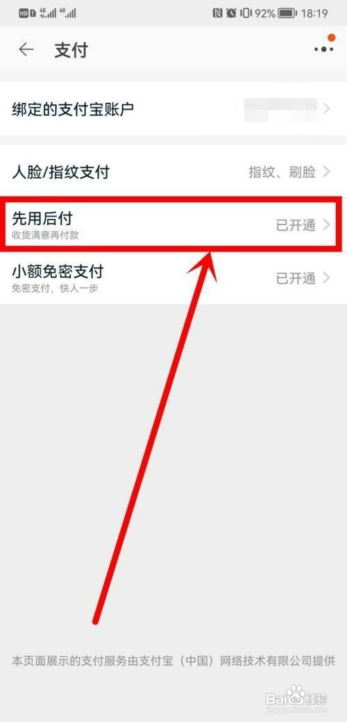 进入支付界面,点击先用后付选项。