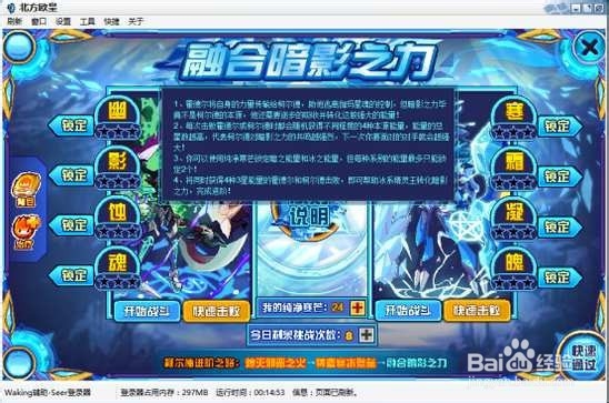 使用的为系统精灵冰王,未削弱,和削弱一次时,冰王被直接秒杀,可以拼BOSS开属性,然后自己强化第五击杀,挑战BOSS不需要消耗道具,可以无限打