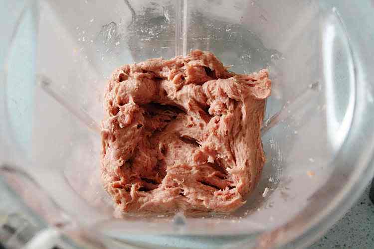 7、搅打成泥状。我是搅打一会儿就停下来,用筷子拌一拌再继续搅打,这样能打的比较均匀;