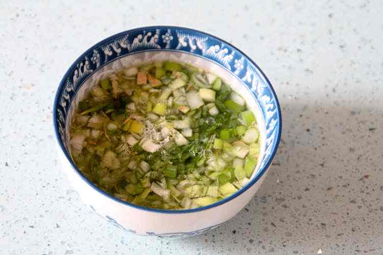5、冷藏结束前,将葱姜切碎末,加入热水,提前浸泡20~30分钟;