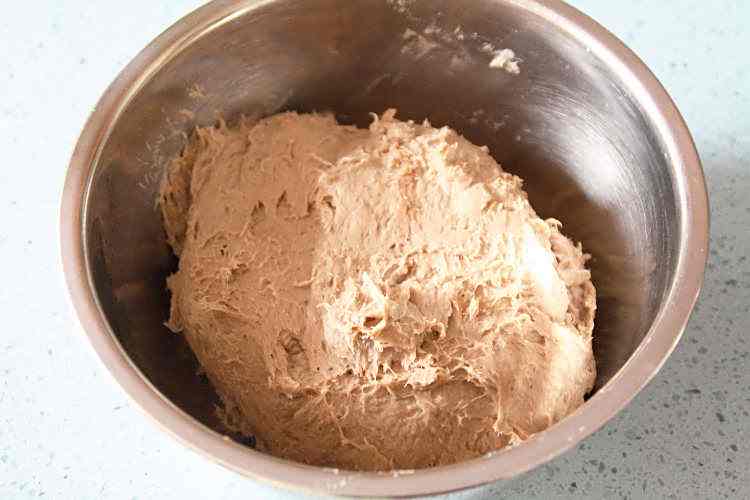 4、用手揉捏至微微发粘,盖上保鲜膜,放入冰箱,冷藏3~4小时或者过夜;
