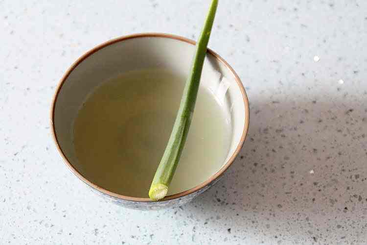 9、将葱姜水过滤,此时葱姜水的颜色应该微微泛黄;