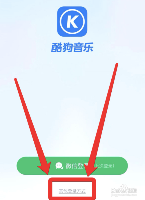 在酷狗登录页面,选择“其他登录方式”选项。