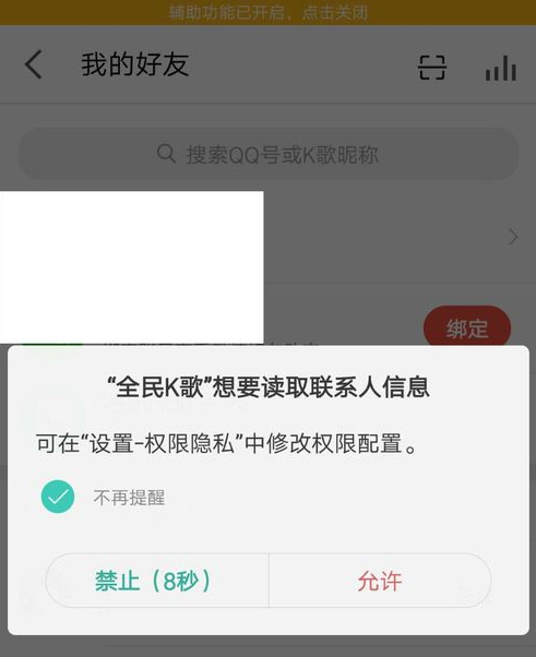 六、弹出读取联系人信息提示界面,点击允许就可以看到那些人在使用全民K歌了;如下图
