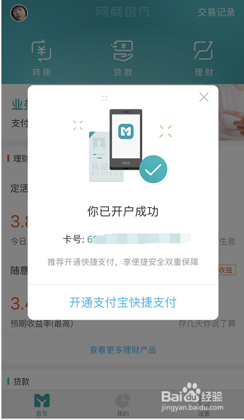 网商银行其实和支付宝是一家的,很多人接触到它与支付宝有关,我们可以直接通过支付宝进入网上银行,下面小编教大家怎么注册开通网商银行,供大家参考!工具/原料more网商银行方法/步骤1/11分步阅读