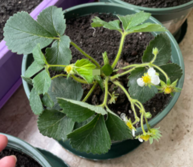 如果家里盆栽草莓突然开了很多花,在草莓苗不是特别结实的情况下,或者在叶子稀少的情况下,叶子很薄,植物看起来很弱,建议掐掉部分花蕾,这样它的幼苗长得强壮,幼苗好,后面结果会更多。