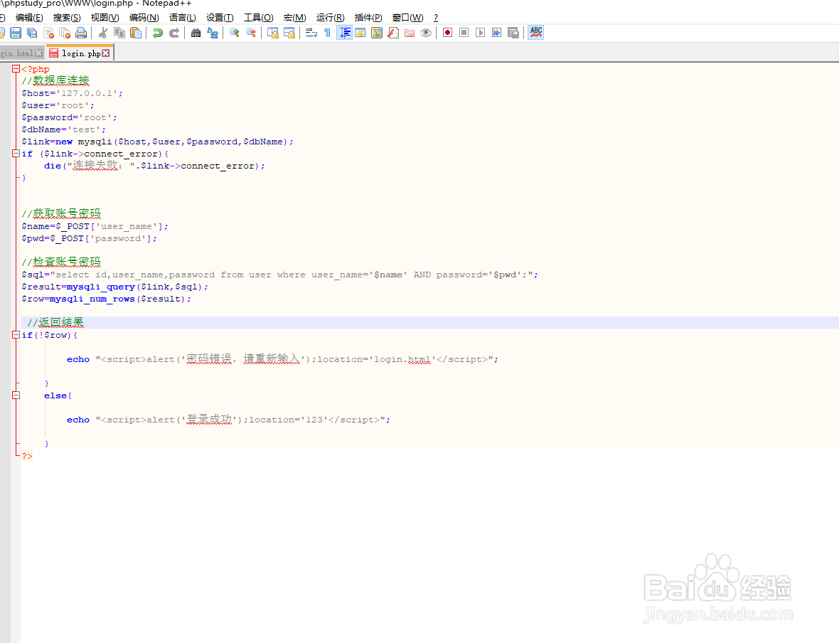 这里给大家简单介绍下登录login.php代码该怎么写。工具/原料more电脑PHPstudyNotepad++方法/步骤1/6分步阅读