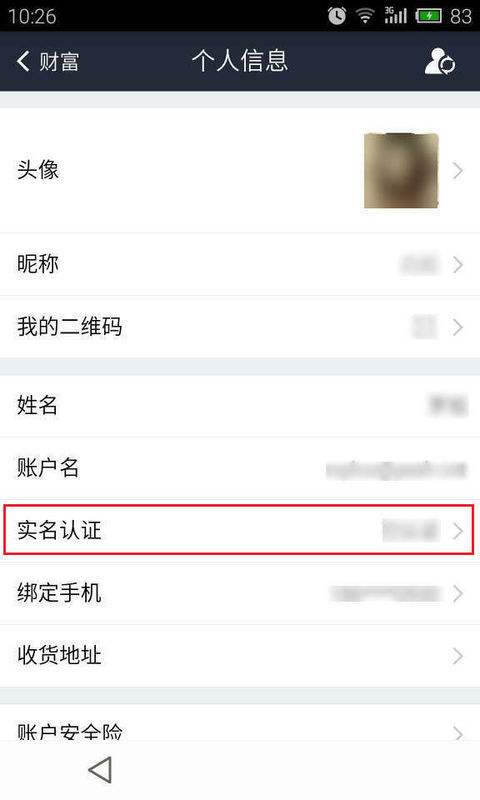 登录支付宝钱包,点击“财富”—“个人信息”—“实名认证”;