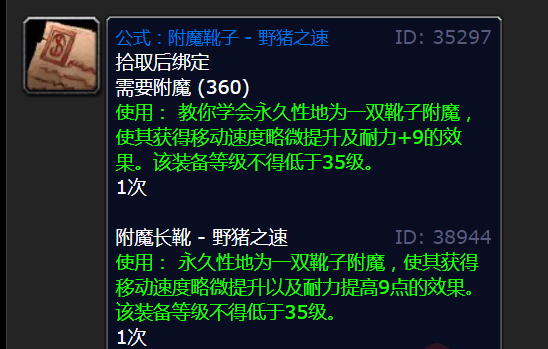 魔兽世界 副魔野猪之速 要什么材料 图样在哪出