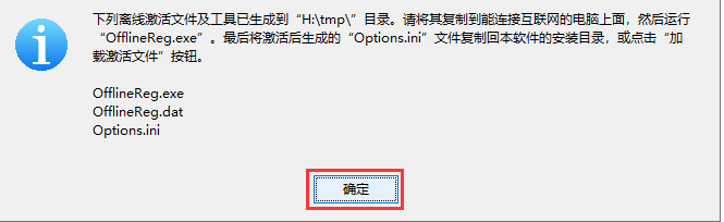 7/9离线激活文件保存成功,点击“确定”按钮。然后将这三个文件复制到一台可以连接互联网的电脑
