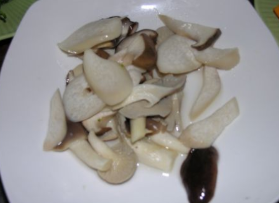 5.把蘑菇捞出,控干水分,放在盘子上。如下图所示: