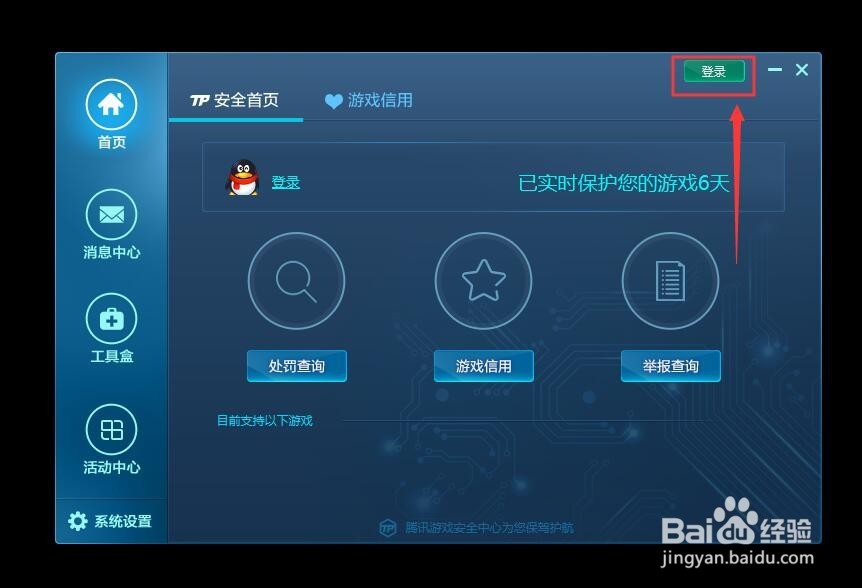 4/5四:游戏组件异常情况③:找到并打开游戏安全中心,登陆账号,选择需要修复的游戏进行修复。