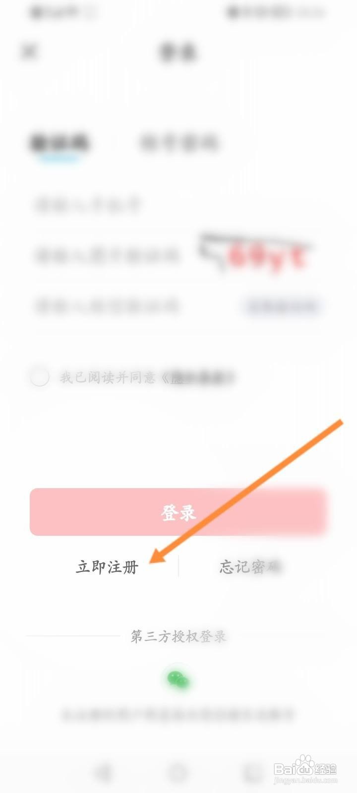 3/4点击下面的立即注册选项。