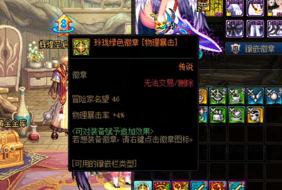 玲珑徽章暴击为4%。玲珑徽章。这是对剑帝来说,增加暴击率最直接方法,红绿徽章20力+1.9暴击,绿色则是4%暴击。剑帝暴击率不足,徽章最为关键,镶嵌能一劳永逸。