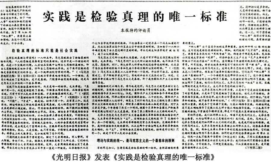 1978年5月11日,《光明日报》发表本报特约评论员文章《实践是检验真理的唯一标准》,由此引发了一场关于真理标准问题的大讨论。