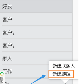 5、如果是想增加新的分组,那么在页面的左侧依次点击+-新建群组即可完成联系人的分组,如图;