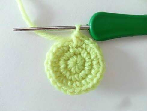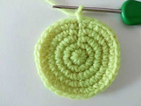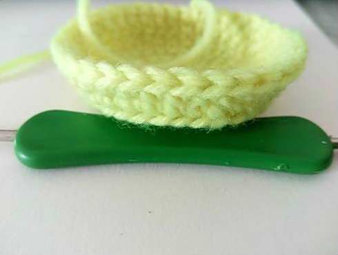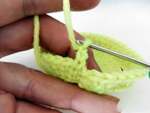 6、不加不减,只钩外半线,即短针的条纹针,合计36针;