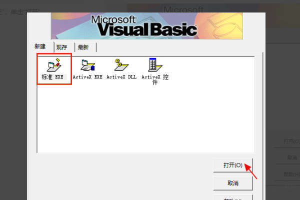 2、选择“标准EXE”,单击“打开”。