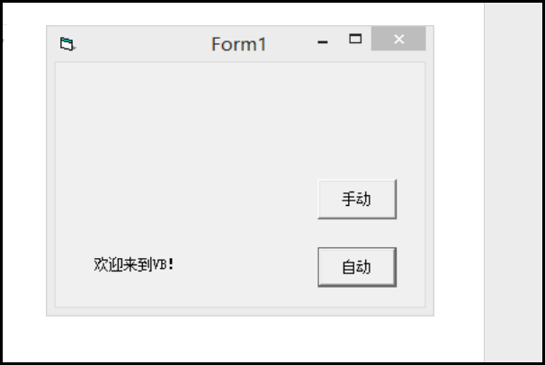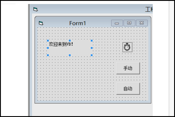 4、把label的caption改成“欢迎来到VB!”,command1的caption改成“手动”,command2的caption改成“自动”。